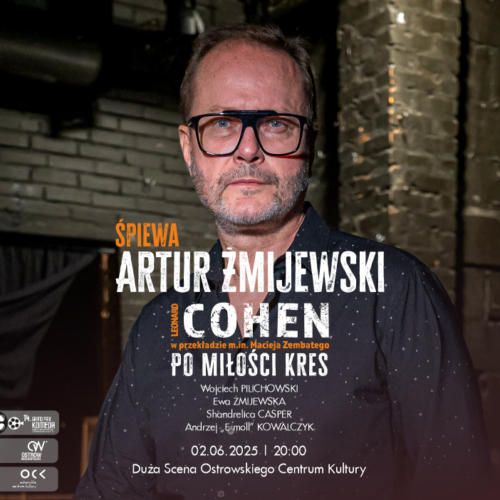 Artur Żmijewski, jeden z najbardziej znanych i cenionych polskich aktorów, tym razem zaskakuje w nowej roli prezentując program muzyczny z utworami Leonarda Cohena. Na koncertowej scenie usłyszymy takie utwory jak „Alleluja”, „W tajnym życiu mym” (In My Secret Live), „Zuzanna”, „Tańczmy po Miłości Kres” (Dance Me To The End of Love), „Wspomnienie” (Memories) oraz wiele innych. Każdy z nich, dzięki doskonałym tłumaczeniom autorstwa Macieja Zembatego, Romana Kołakowskiego i Michała Kuźmińskiego, zyskuje nowe życie, wprowadzając słuchaczy w świat pełen poezji, emocji i głębokiej refleksji.