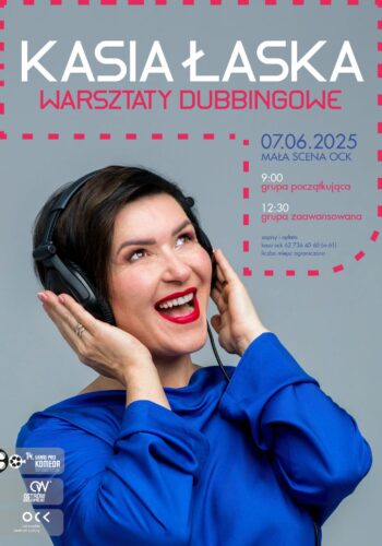 Warsztaty dubbingowe z Kasią Łaską odbędą się ostatniego dnia festiwalu filmowego Grand Prix Komeda. W dwóch grupach: podstawowej, w której jest wymagana umiejętność płynnego czytania, i zaawansowanej.